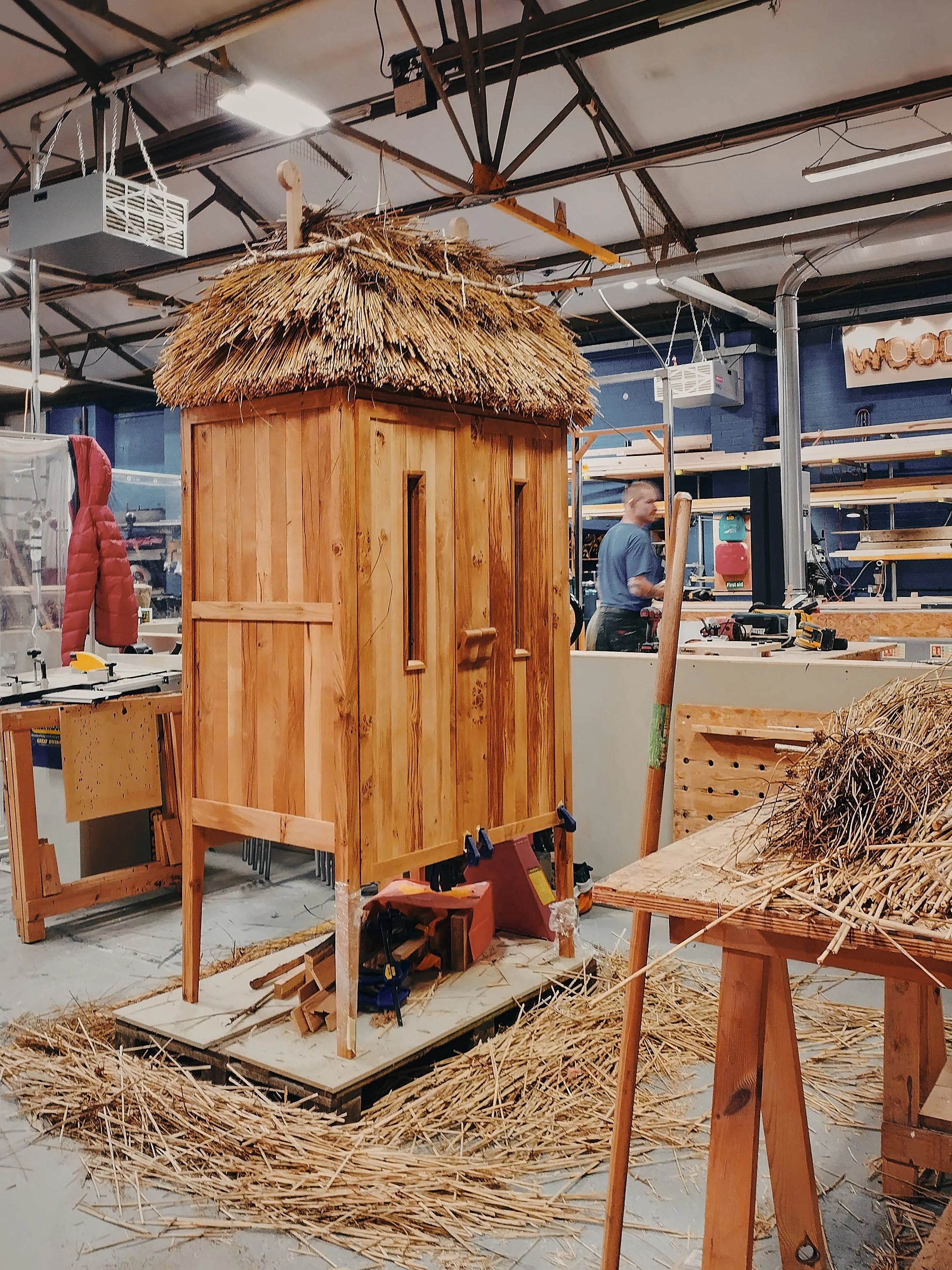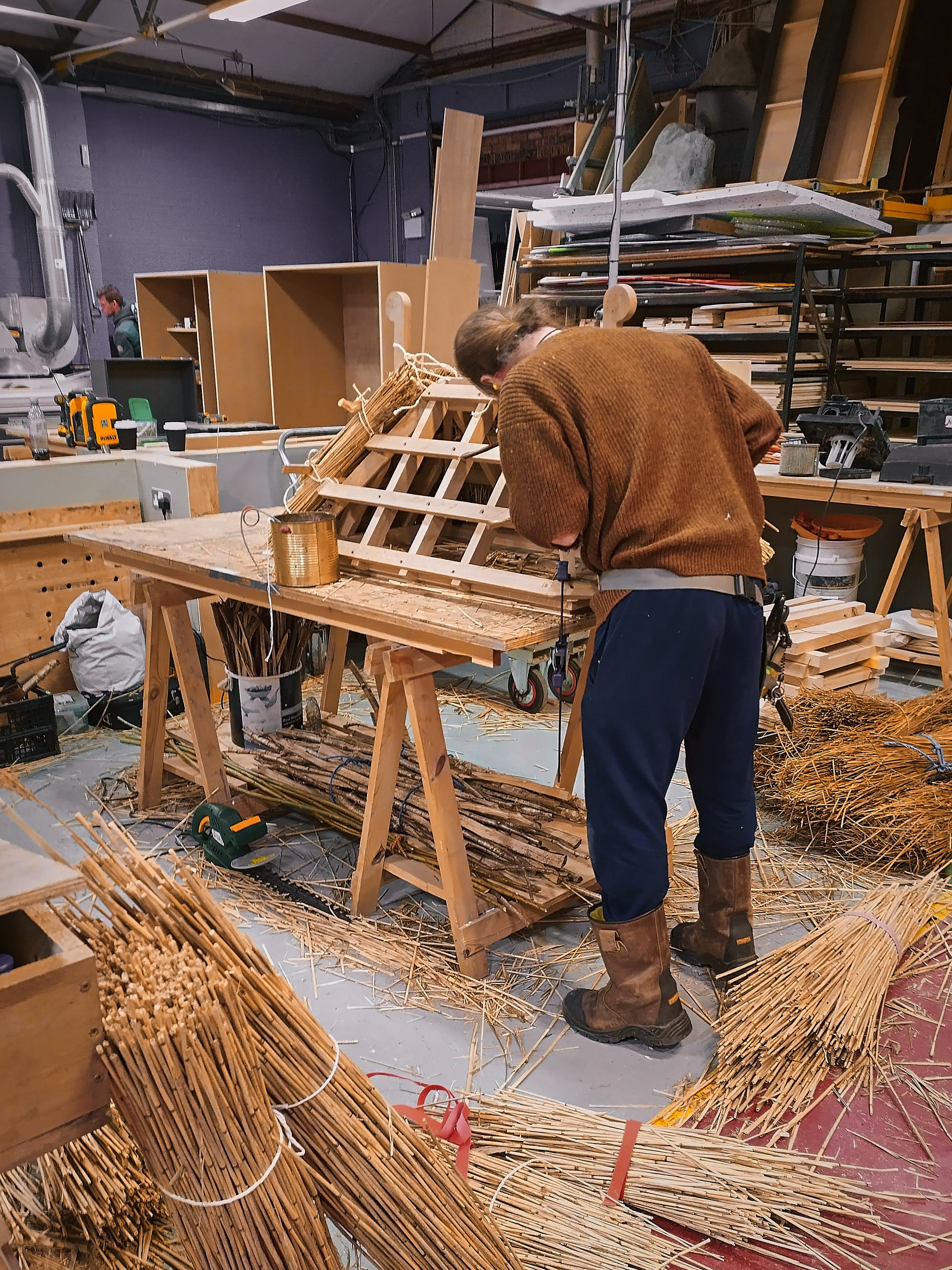 “The thatch material consisting of reeds harvested from the reedbed near Errol on the River Tay, Scotland.”